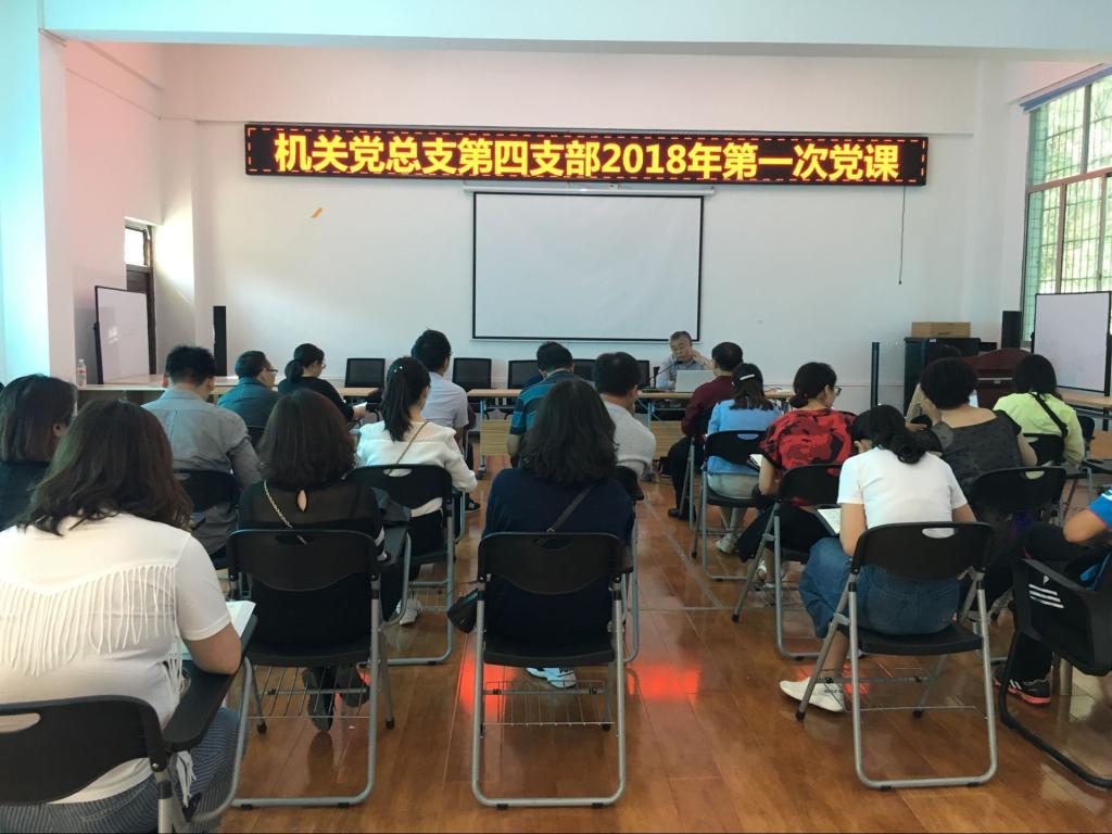 2018年5月25日下午,安顺学院机关党总支第四支部在电教楼招聘大厅开展主题党日活动。安顺学院副院长令狐荣涛以《学深悟透用好马克思主义》为主题为第四支部全体党员上了一堂思想深刻、内容丰富的党课。