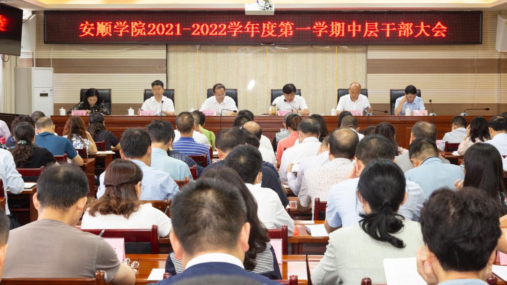2021年8月26日,安顺学院2021—2022学年度第一学期中层干部大会在特教大楼七楼第三会议室召开。校领导及全校副处级以上领导干部参加会议。会议由党委副书记陶文彩主持。